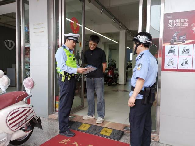 民警还结合近期典型事故案例,详细讲解了未佩戴安全头盔、逆向行驶、闯红灯、违法载人等交通违法行为的危害后果,并向经营者强调:不得向消费者提供非法改装服务,要主动告知购车人登记上牌流程及骑行注意事项。
