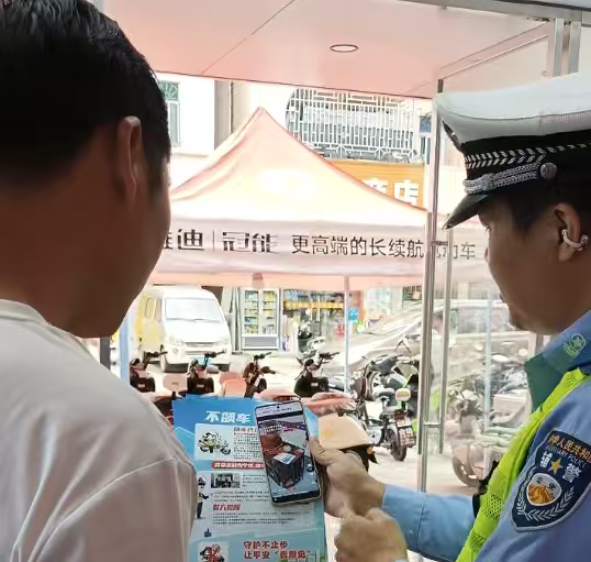 活动中,宣传民警逐一走访电动自行车销售网点,向经营者及前来选购车辆的群众发放电动摩托车交通安全宣传单张等材料,同步播放电动摩托车交通事故警示视频。